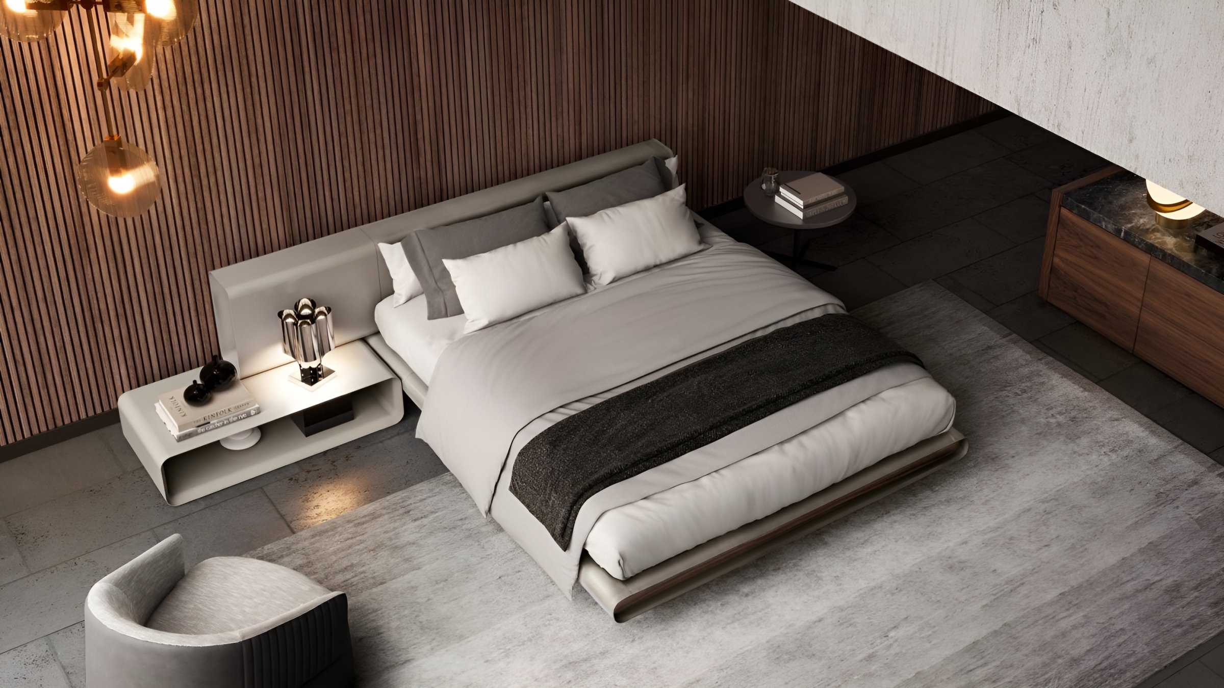 Элементы Tub представляют собой параллелепипеды со скруглёнными углами, которые соединяются друг с другом, образуя саму кровать. Объём изголовья похож на большую балку, он может быть центральным или асимметричным.