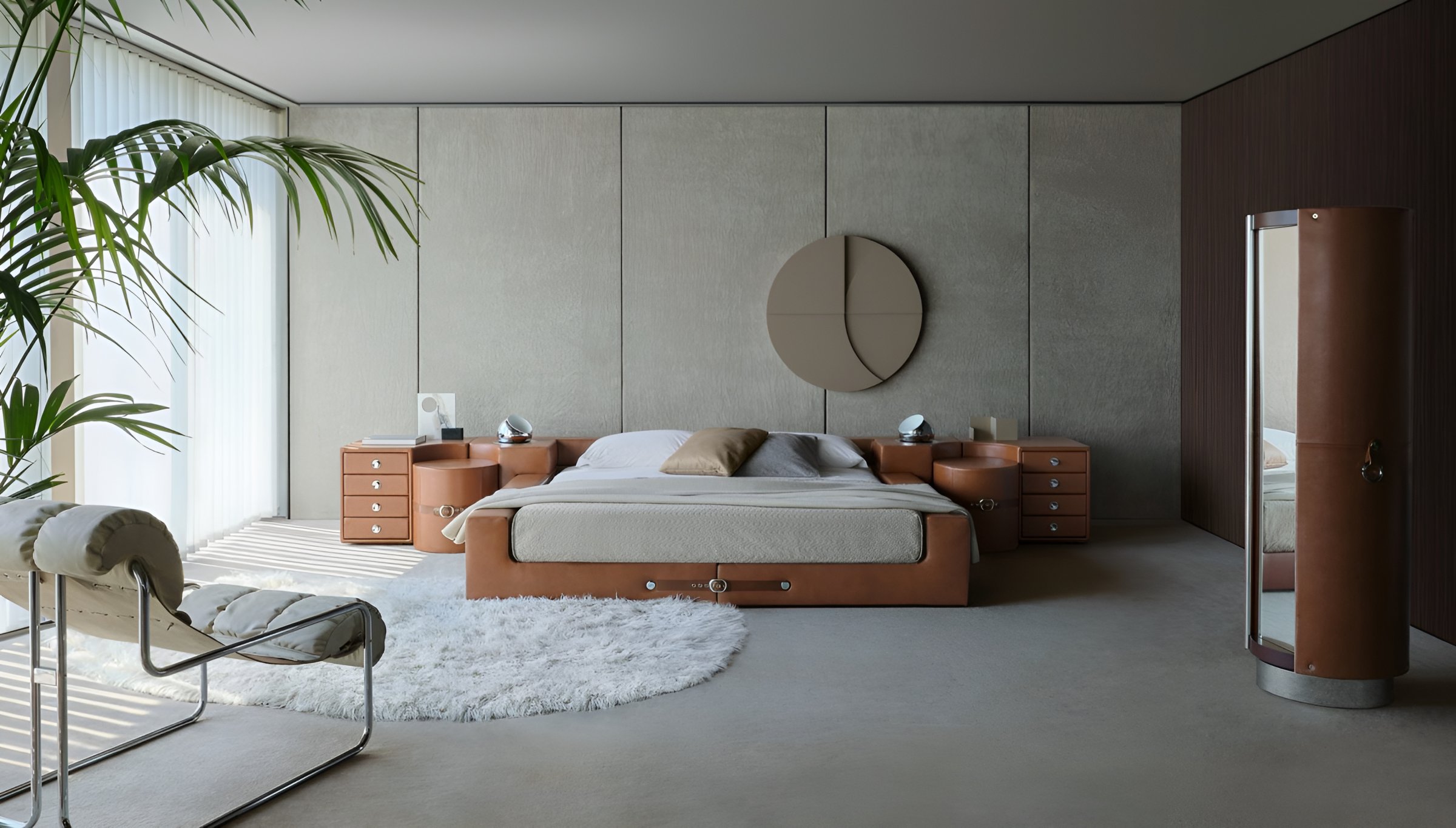 Коллекция включает в себя стул, стол, кресло для отдыха, кровать, прикроватные тумбочки и оригинальный вращающийся туалетный столик; все они отличаются уникальным комфортом и стилем.