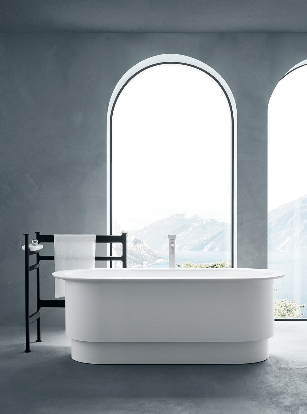Она отличается высокой эстетической ценностью, мягким на ощупь покрытием и приятной тактильной поверхностью, которая обеспечивается за счет использования материала Matt Tekno Deimos. Благодаря эксклюзивному дизайну, разработанному Гарсией Кумини, римская ванна находит свое максимальное выражение, когда стоит в центре комнаты, благодаря своим эксклюзивным линиям, которые придают престиж обстановке ванной комнаты. Для большей практичности и функциональности отдельно стоящая ванна может быть оснащена элегантной полкой из орехового дерева Каналетто для хранения мыла и парфюмерии, а также рядом аксессуаров, всегда подписанных Гарсией Кумини.