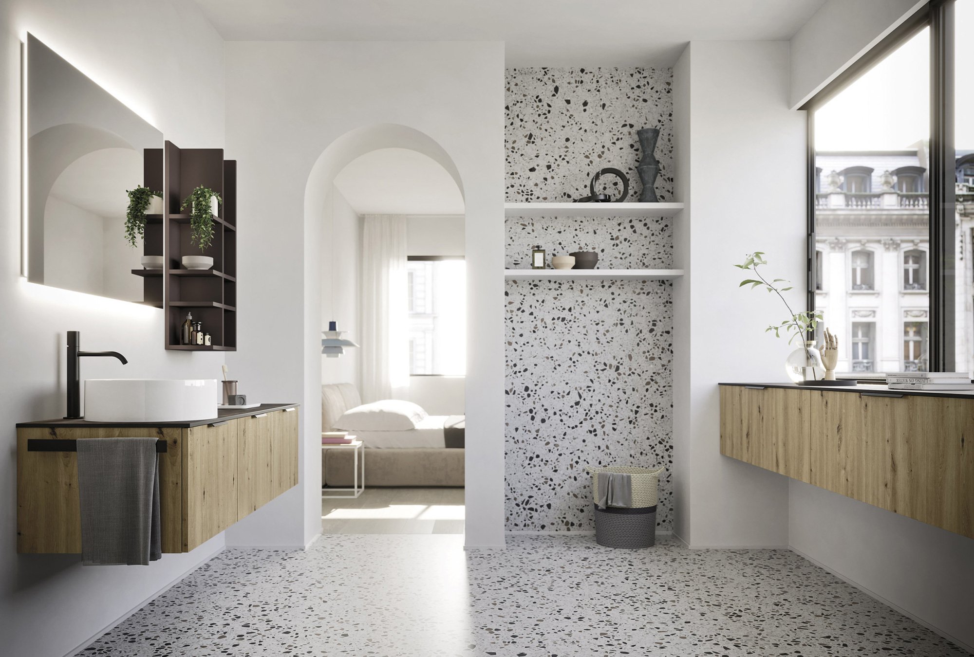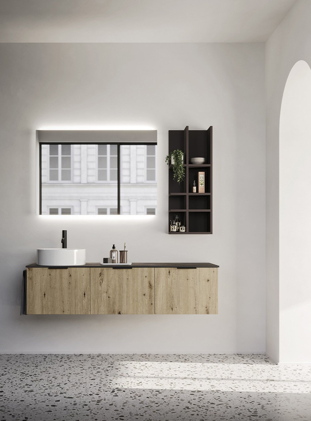 Ho.Me Plus — это инновационная коллекция от Arbi Arredobagno, в которой представлен широкий ассортимент термоструктурированного меламина с естественными прожилками, классическими или модными цветами. Коллекция доступна в двух вариантах: с плоской передней частью и ручкой, а также со встроенной ручкой в форме буквы «J». Благодаря модульной конструкции, позволяющей выбирать между тремя вариантами глубины и разной шириной, коллекция дополнена изогнутой версией, которая предлагает базовые элементы с плавными линиями, чтобы удовлетворить даже самые взыскательные требования к оптимизации небольших пространств.