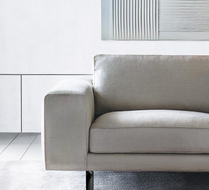 Внутренняя конструкция изготовлена из массива дерева. Обивка доступна в съёмном тканевом и несъёмном кожаном вариантах. Ножки из окрашенного в чёрный цвет металла.