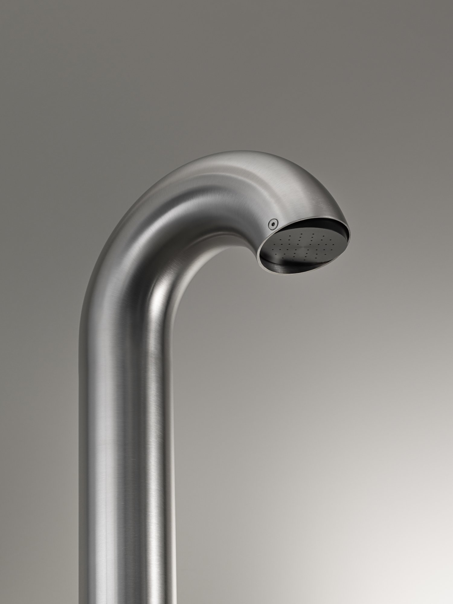 Благодаря регулируемому напору воды можно направить струю ближе к себе, если вы хотите помыть только ноги, или сделать струю более широкой для принятия душа. Расход воды составляет 12 л/мин при давлении 3 бар. Для установки изделия требуется монтаж встроенной части на земле.