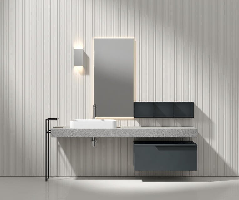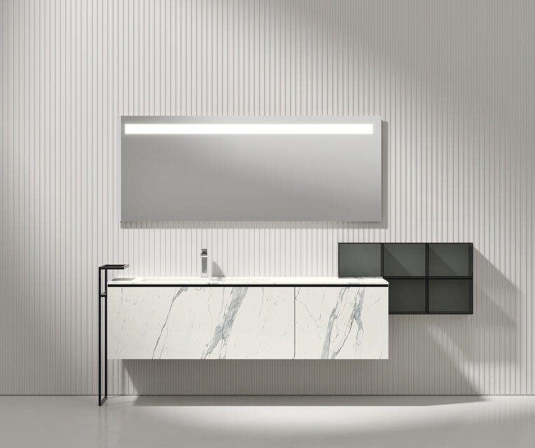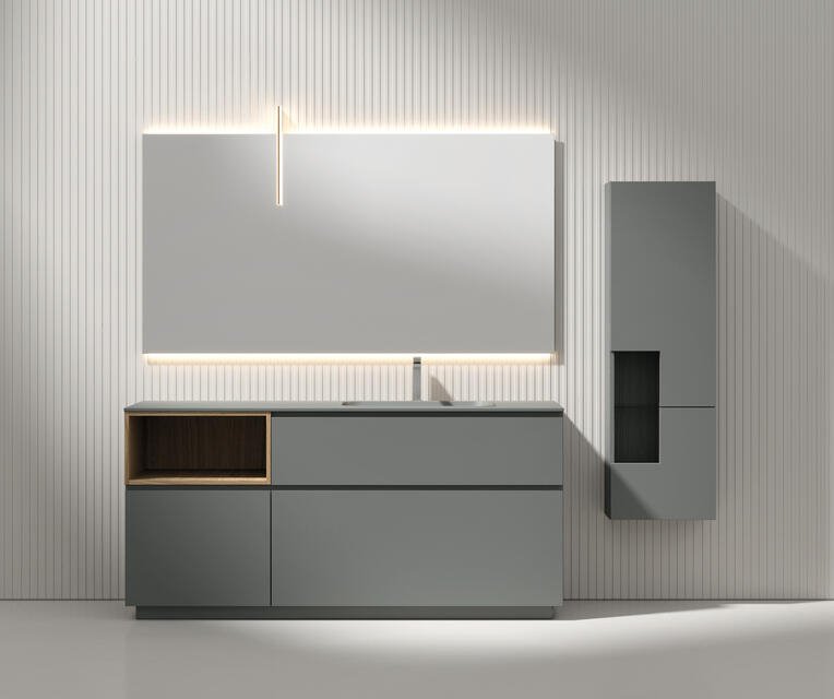 Объемы мебели на земле обеспечивают функциональность и сдержанность, всегда соблюдая текущие тенденции мебели. Широкий выбор материалов и отделки позволяет создавать бесконечные комбинации и комбинации, чтобы создать динамичную и индивидуальную ванную комнату.