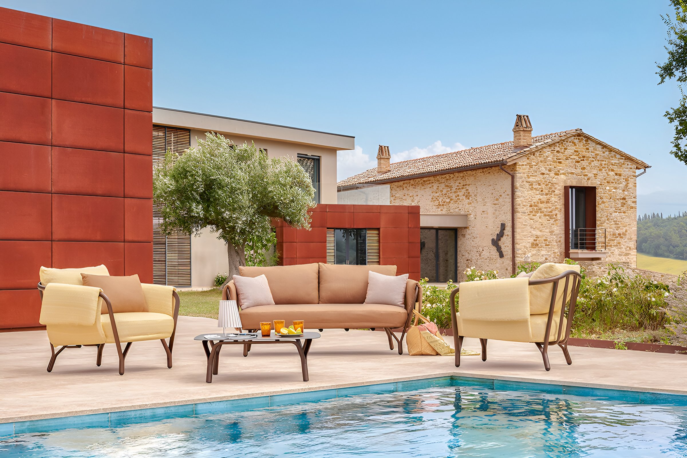 Благодаря мягкому дизайну с изогнутыми линиями, комфорту и алюминиевой конструкции, Angel — идеальная коллекция для создания дружеской атмосферы даже на берегу моря.
