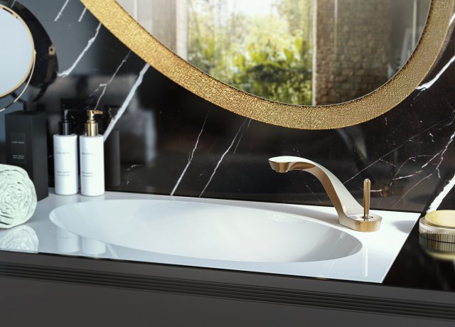 Эта футуристическая коллекция, разработанная Давиде Оппицци, вдохновлена насыщенной цветовой гаммой воды, движением волн и утонченными японскими иероглифами, написанными одним росчерком кисти. Смесители могут оснащаться светодиодной подсветкой, которая меняет цвет в зависимости от температуры воды