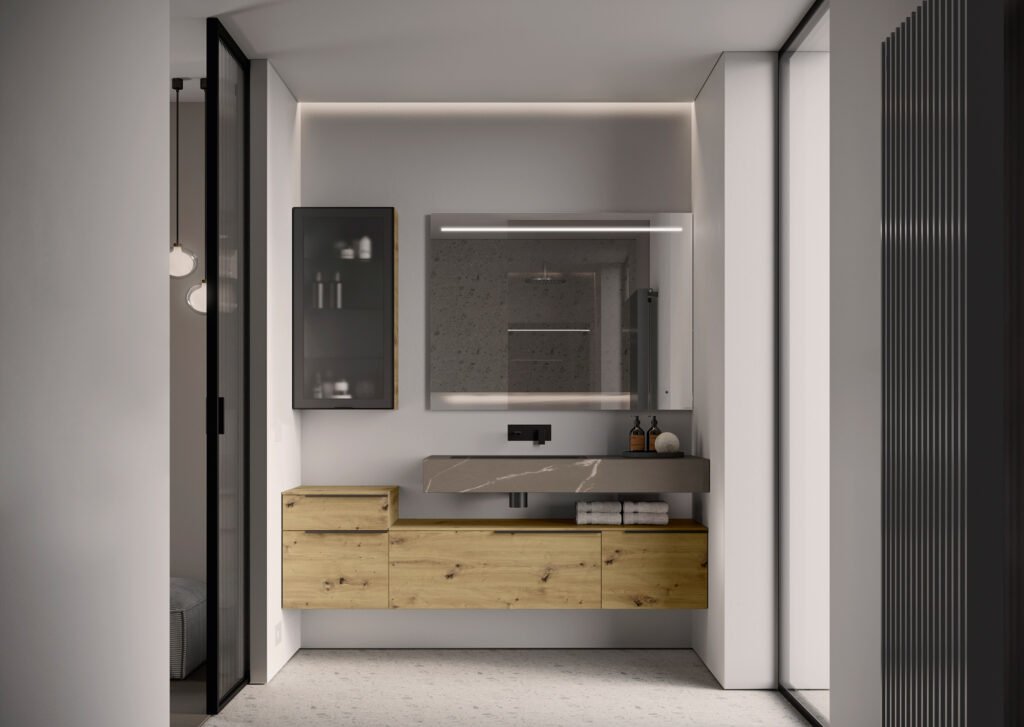 My Time-это коллекция мебели для современной ванной комнаты, характеризующаяся большой модульностью элементов мебели и предложениями раковин, которые делают ее универсальной и функциональной для различных пространств и потребностей современной жизни.
