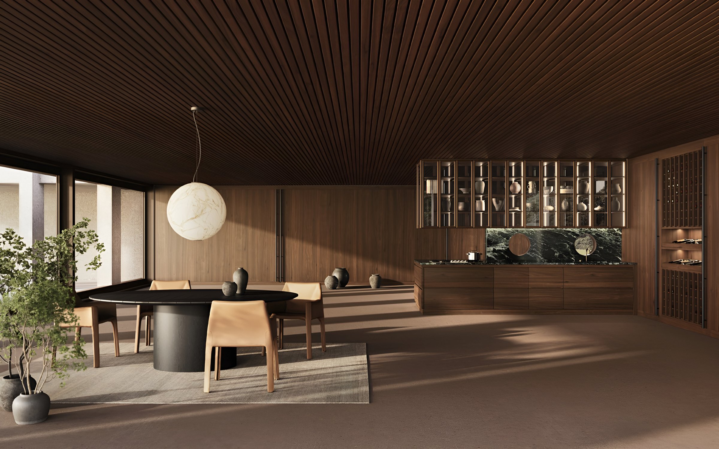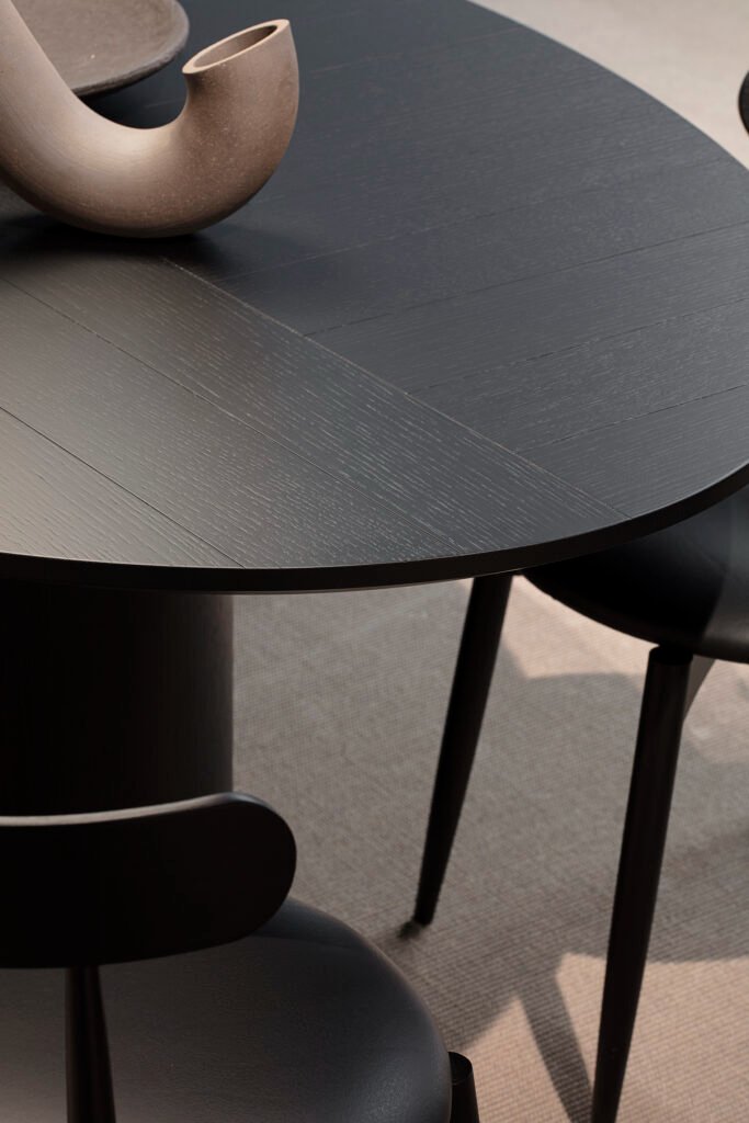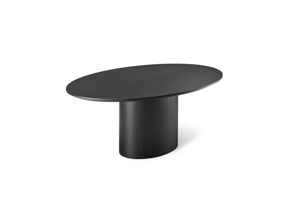 Этот элегантный стол четких линий выделяется за счет своего основания и столешницы овальной формы. Особый декор поверхности возможен благодаря геометрической игре расположенных вертикально и горизонтально планок.