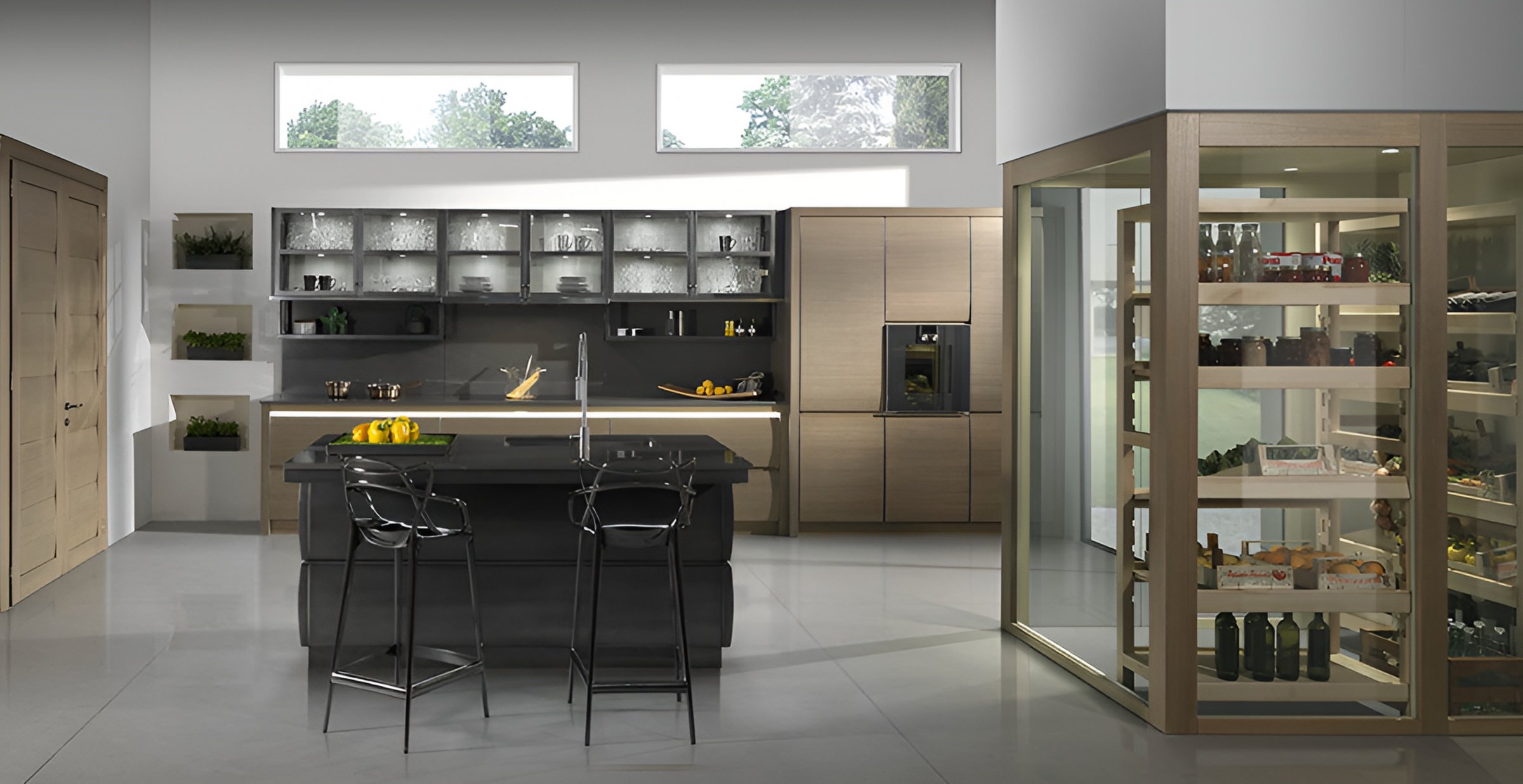 Истинное выражение таланта проектирования и ручной обработки, кухня Chronos из массива дерева – чистый восторг прикладного искусства в кулинарном мире. Выпуклость дверец – отличительная черта всех кухонь Chronos, которые совмещают в себе стилистическую утончённость, ценные материалы и высокие технологические решения. Дерево дуба или ореха каналетто в натуральной отделке или в сочетании с цветовой гаммой являются лидерами этой современной кухни с мягкими и изогнутыми линиями. Она задумана с целью удовлетворения любых эстетических и пространственных потребностей, посредством оснащения центральным островом или полуостровом. Коллекция Chronos демонстрирует всю свою эклектичность при помощи индивидуальных решений, предназначенных для обстановки различных пространств в доме. Выпуклая дверца становится путеводной нитью всего проекта, в полной мере затрагивая кухню и гостиную зону, включая стены и межкомнатные двери.