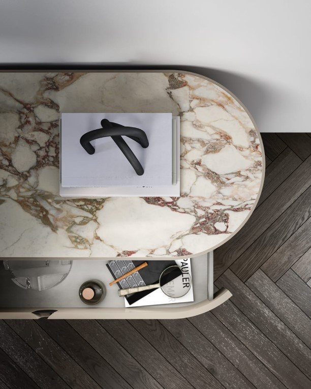 Отличительной особенностью является утопленная ручка ящика с бронзовой вставкой, которая не только добавляет/