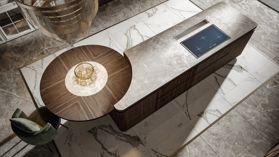 Кухня с вневременной красотой и изысканностью благодаря эффекту Canneté, способному придать дверце трехмерность и уникальное тактильное ощущение.