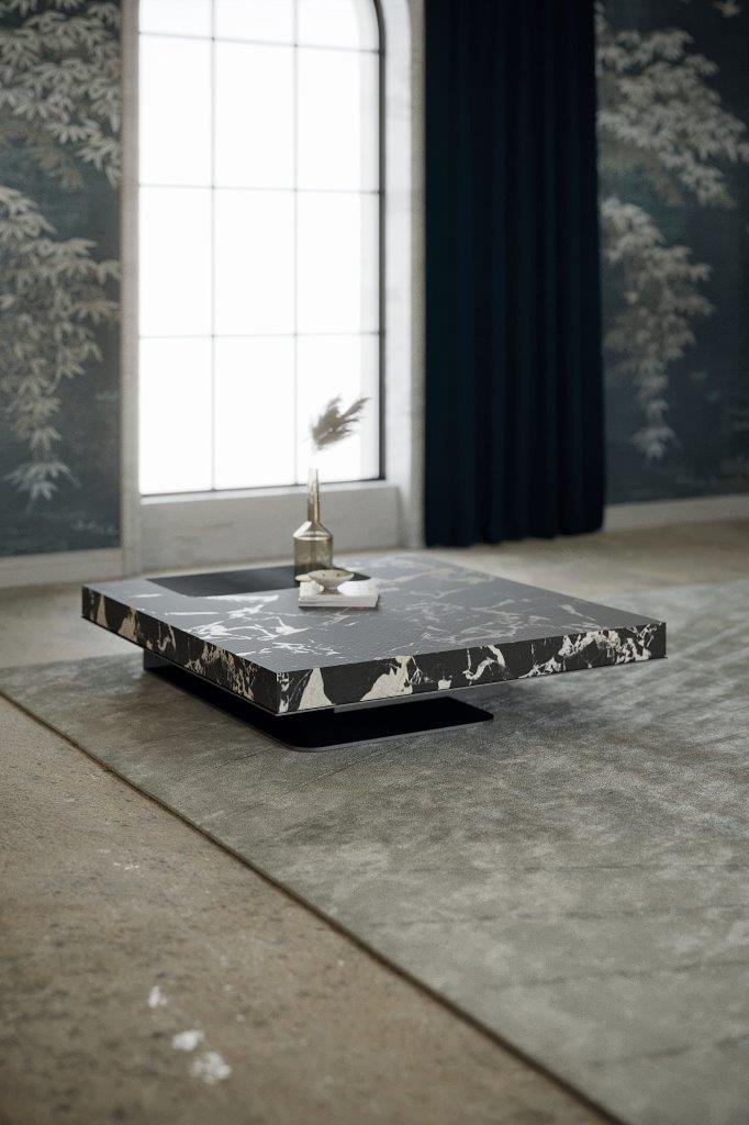 Как и вся коллекция Ipanema, он имеет металлическую конструкцию с матовой черной никелевой отделкой, которая поддерживает и фиксирует драгоценную прямоугольную мраморную столешницу толщиной 10 см. Журнальные столики доступны в отделке из высококачественного мрамора Grand Antique и из полированного массива дерева Frakè.