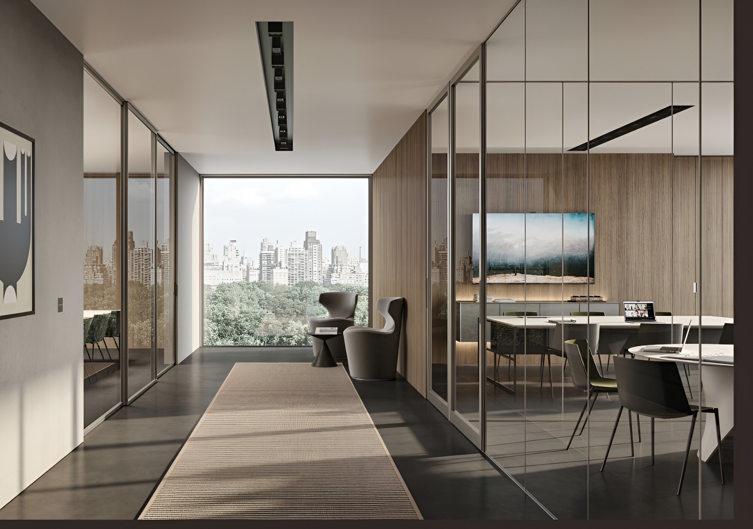 Раздвижная версия подходит для разделения пространства, элегантно и минималистично вписываясь в интерьер.