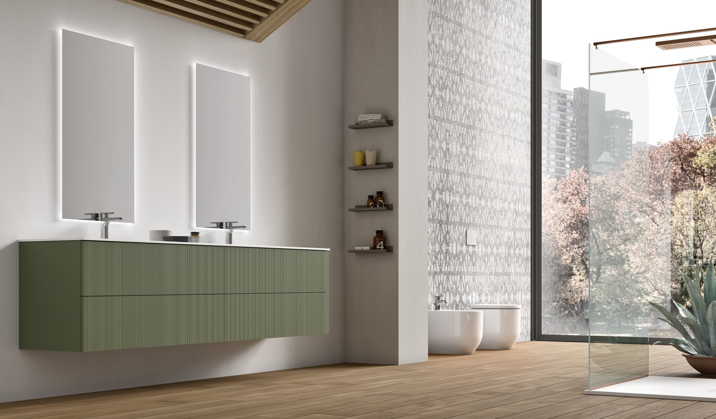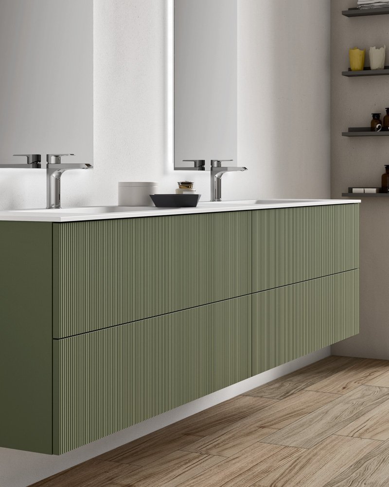 Elite - это коллекция мебели для ванной комнаты с изысканной и текстурной деревянной отделкой: красивой на вид и приятной на ощупь. Elite дает возможность персонализировать мебель для ванной комнаты с использованием дерева millerighe или натурального дерева, в оттенках termocotto дуб, светлый дуб или орех.