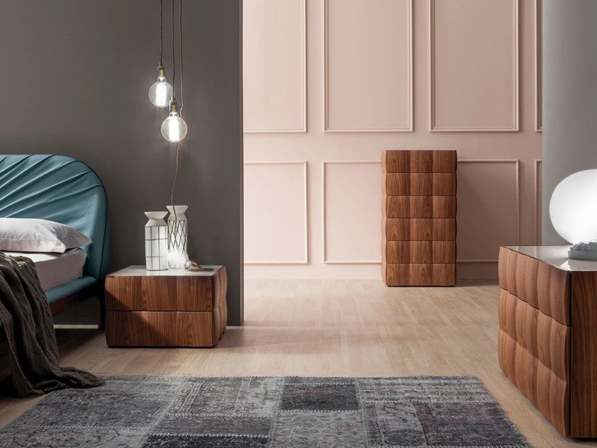 Материал, который мы использовали, — это МДФ, покрытый тиснением и обработанный лазером, или покрытый деревом. Это создаёт эффект капитоне и оживляет жёсткую конструкцию: теперь она выглядит как мягкая подушка.