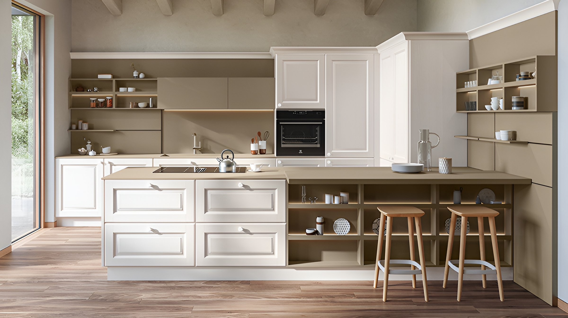 Заново откройте для себя стиль как ценность, которой следует дорожить. Стиль для тех, кто предпочитает традиционную мебель, но не отказывается от современных функций. Характерной особенностью ансамбля является дверь с декоративной рамкой и скошенной панелью.