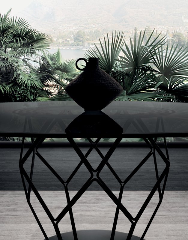 Шестиугольные и пятиугольные геометрические фигуры, соединенные между собой, оживляют стальную основу, отделанную в мельчайших деталях. Новые текстурированные металлические лаки делают отделку более изысканной. Крышка, доступная в двух размерах, выполнена из дымчатого стекла с пескоструйным рисунком или из шпона макассарского черного дерева с оригинальной вставкой из кленового дерева.