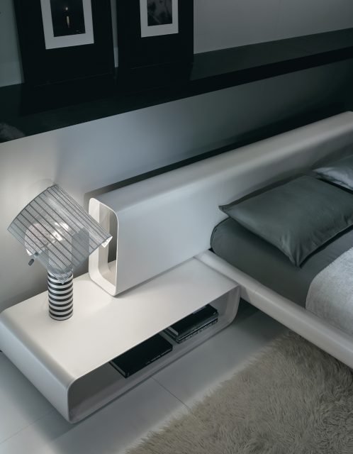 Элементы Tub представляют собой параллелепипеды со скруглёнными углами, которые соединяются друг с другом, образуя саму кровать. Объём изголовья похож на большую балку, он может быть центральным или асимметричным.