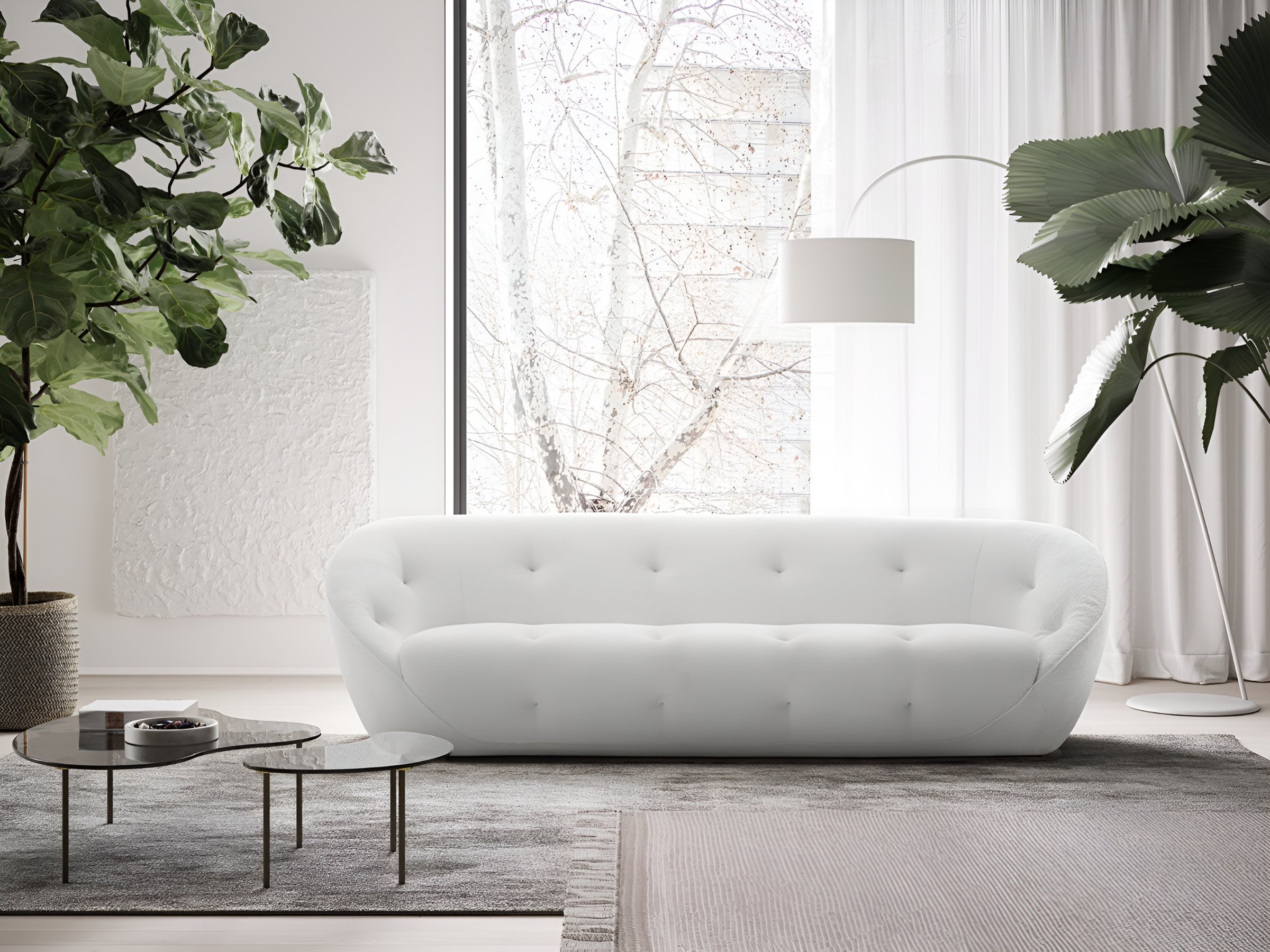Мягкие формы обивки подчёркиваются использованием тщательно подобранных тканей/кожи и стёганой обивки. Подходит для современных гостиных, придаёт жилому пространству нотку новизны и комичности.