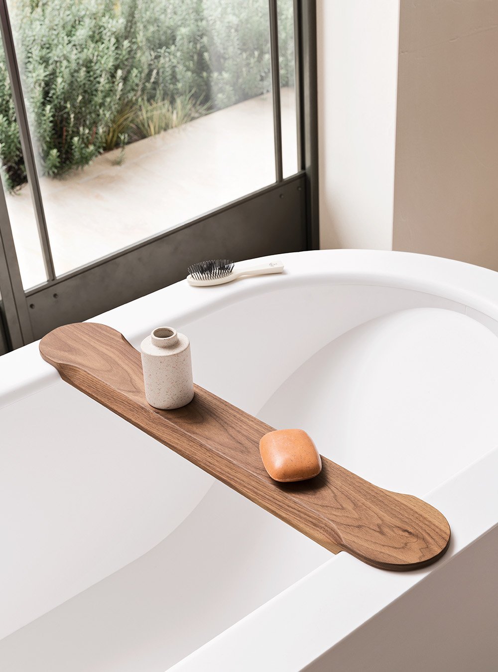 Она отличается высокой эстетической ценностью, мягким на ощупь покрытием и приятной тактильной поверхностью, которая обеспечивается за счет использования материала Matt Tekno Deimos. Благодаря эксклюзивному дизайну, разработанному Гарсией Кумини, римская ванна находит свое максимальное выражение, когда стоит в центре комнаты, благодаря своим эксклюзивным линиям, которые придают престиж обстановке ванной комнаты. Для большей практичности и функциональности отдельно стоящая ванна может быть оснащена элегантной полкой из орехового дерева Каналетто для хранения мыла и парфюмерии, а также рядом аксессуаров, всегда подписанных Гарсией Кумини.