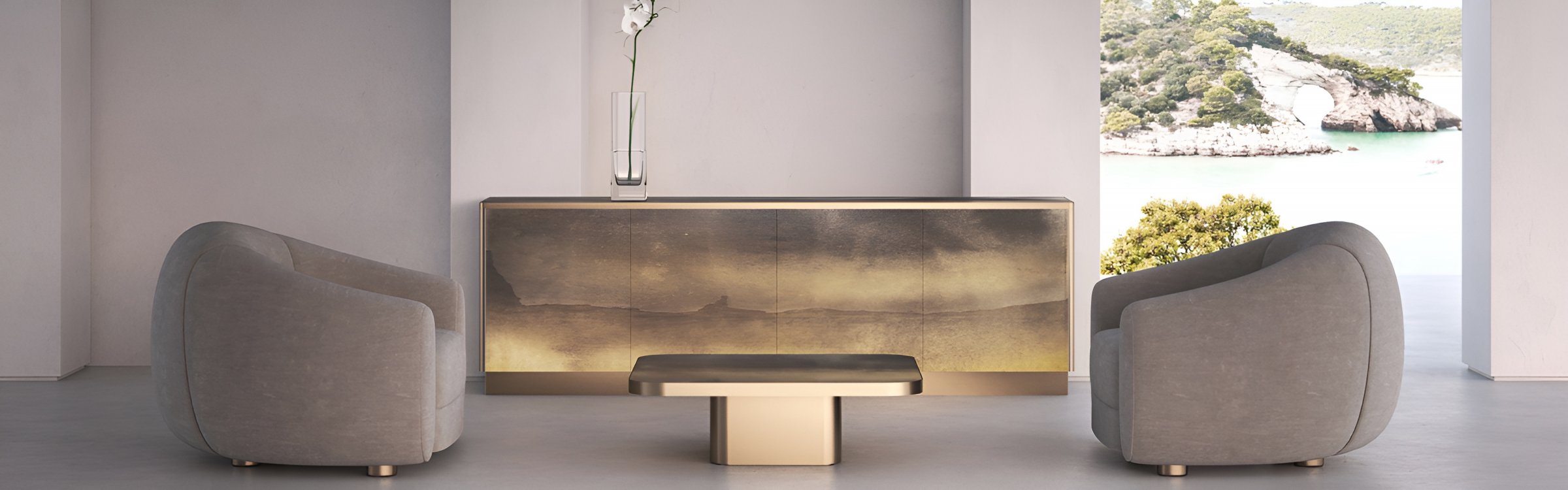 Комод в стиле Гаргано с покрытием из травленого стекла.