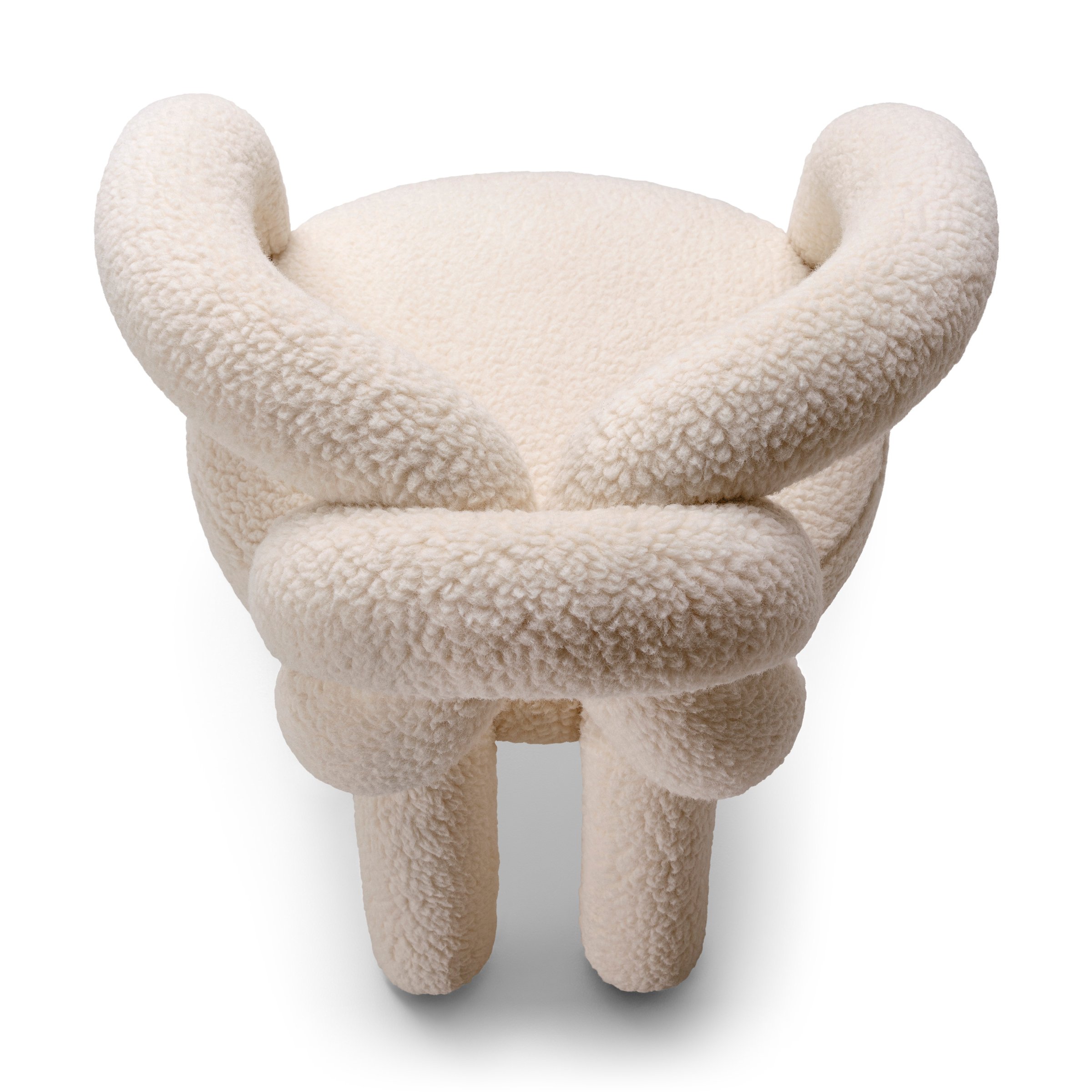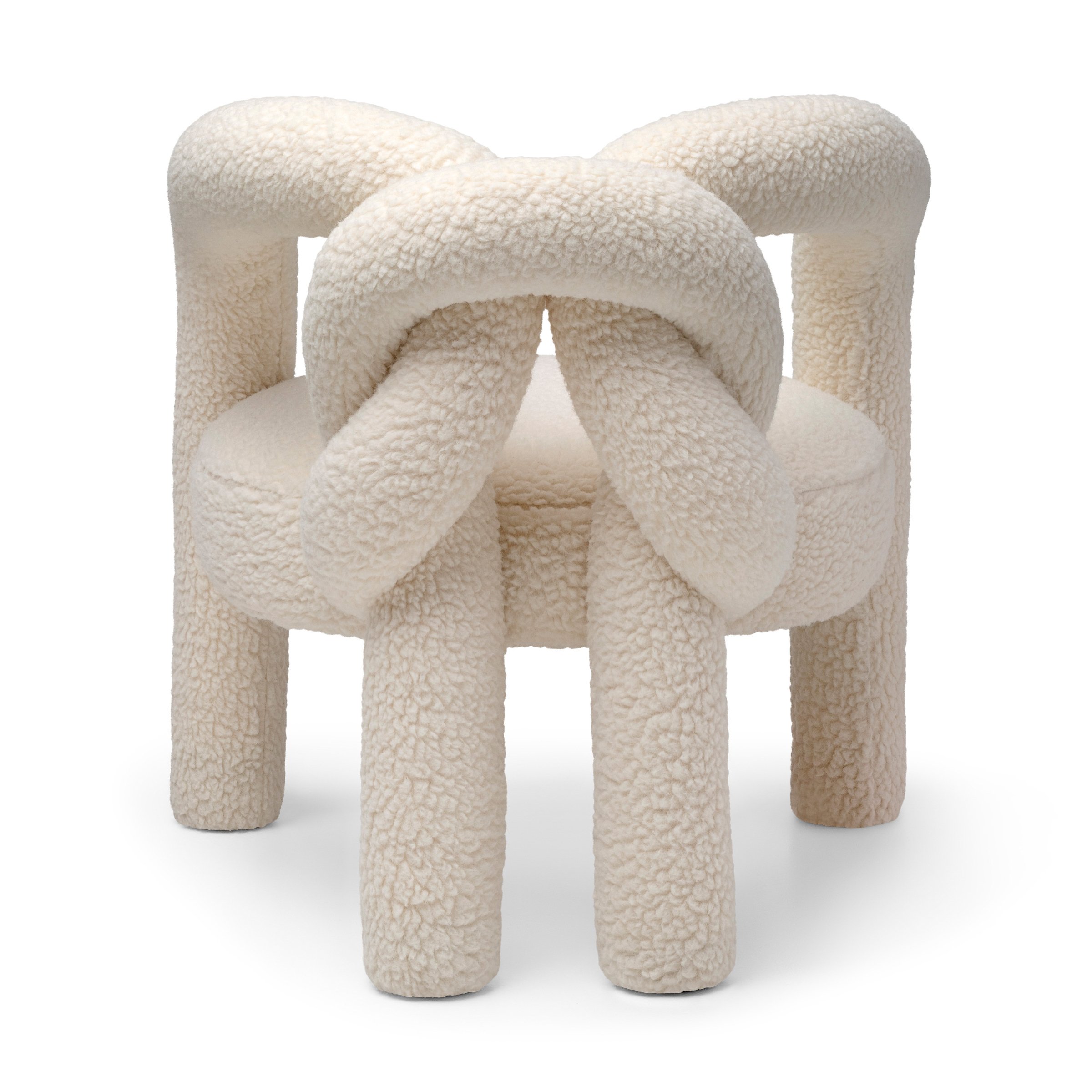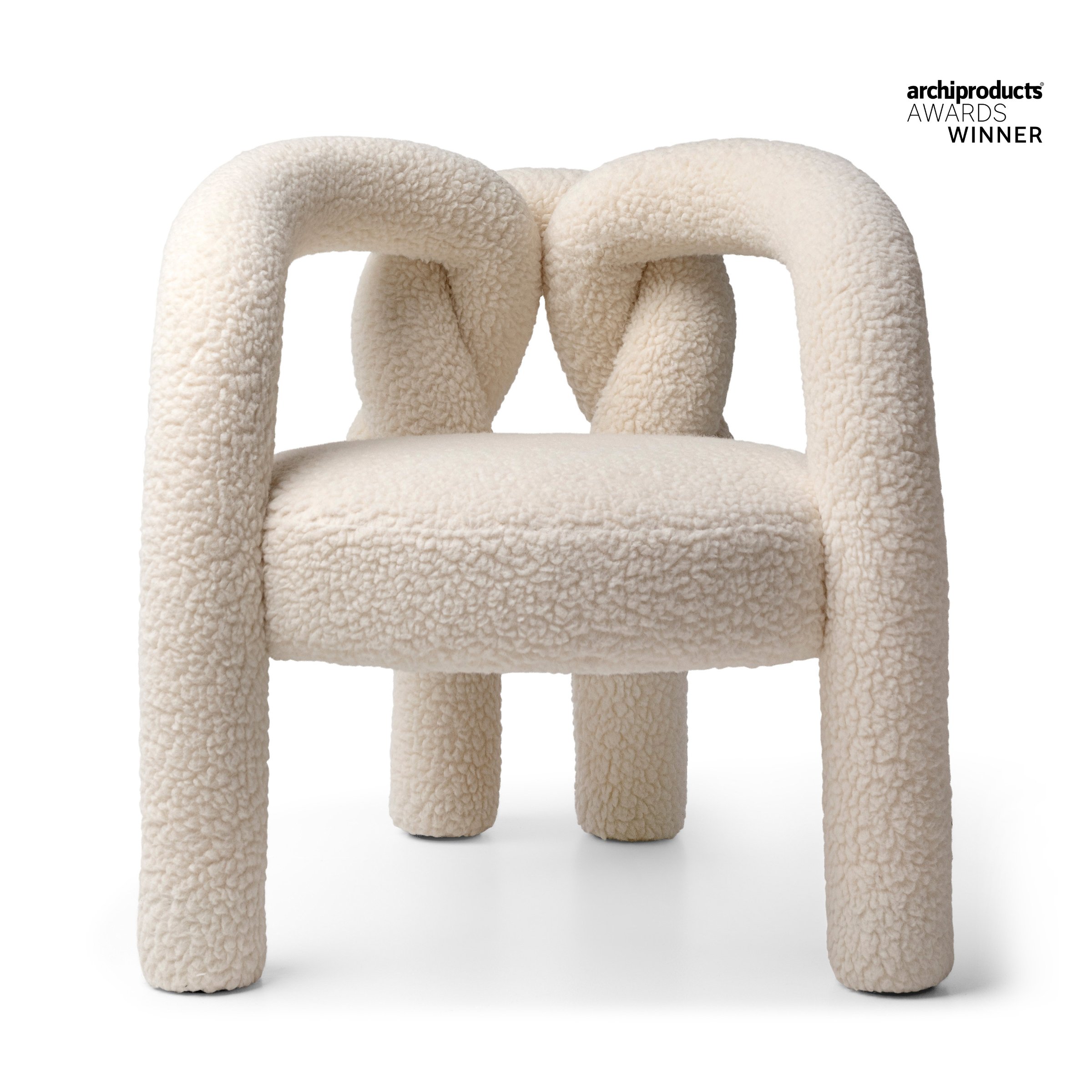 Изогнутые трубчатые металлические каркасы передних и задних ножек пересекаются в спинке, образуя любовный узел. Каркас полностью покрыт пенополиуретаном высокой степени плотности и обшит эластичной тканью. Сиденье оснащено ремнями, набивка из полиуретана.