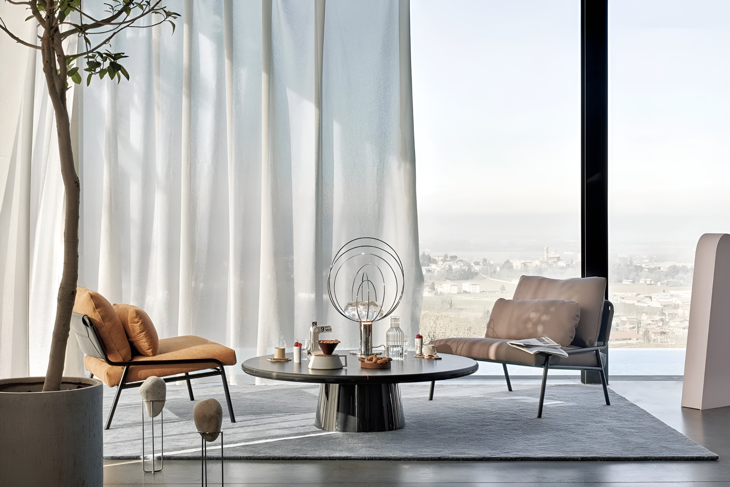 В последнем варианте детали круглого выреза, разделяющего верхнюю и нижнюю части, сами по себе становятся декоративным элементом, создавая по-настоящему уникальное изделие. В версии 2022 года верхняя и нижняя части выполнены из цельного куска мрамора, что создает еще более скульптурный эффект.