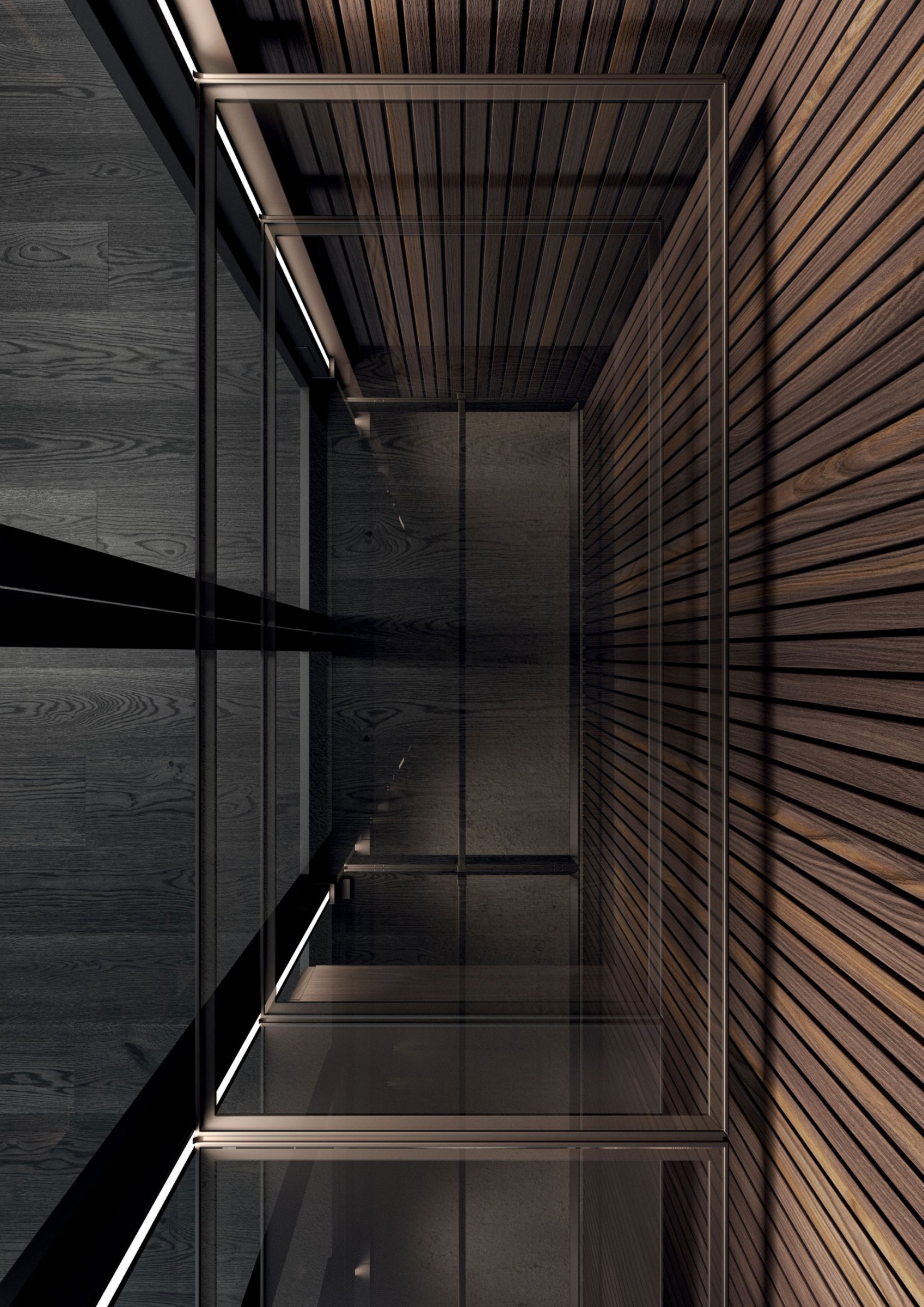 Изделие совместимо со всеми дверями, уже входящими в систему Palo Alto I-box, а также с усовершенствованной дверью Rex, оснащенной инновационным механизмом открывания, похожим на пантограф, который позволяет перемещать одну или несколько пар дверей из закрытого положения в полностью открытое на 180° положение, перекрывая двери соседнего отсека. В результате получается пространство шириной около двух метров.
