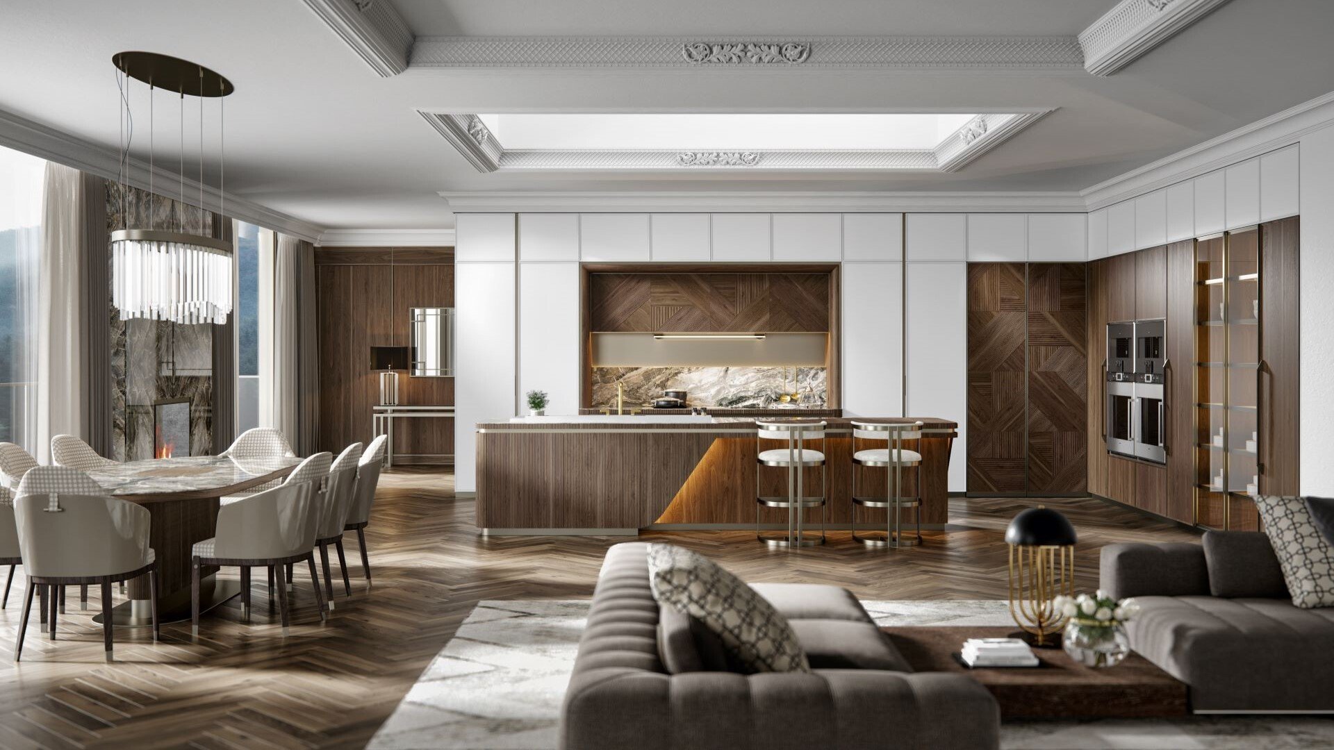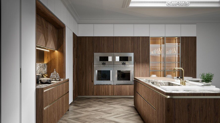 Кухня с вневременной красотой и изысканностью благодаря эффекту Canneté, способному придать дверце трехмерность и уникальное тактильное ощущение.