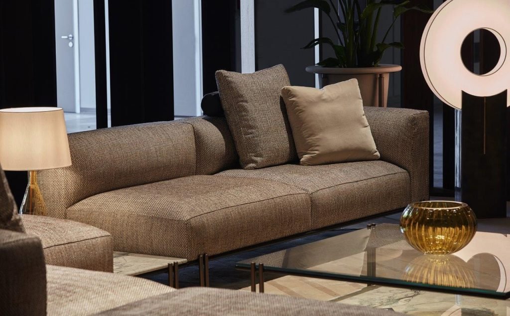 Подушки сиденья и спинки несъёмные и изготовлены из пенополиуретана разной плотности. В модуле шезлонга со встроенным журнальным столиком столешница изготовлена из травертина.