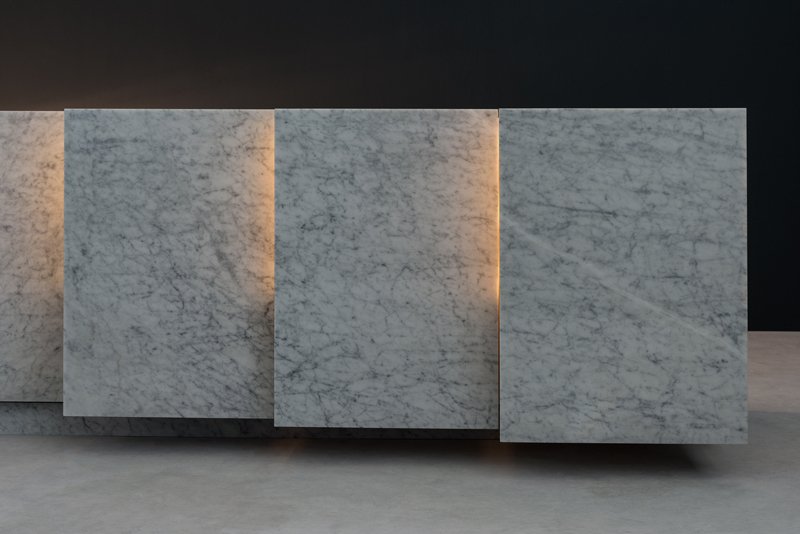 Большая рабочая поверхность представляет собой непрерывную функциональную зону, в которой поверхности для резки деревянных блоков свободно перемещаются с места на место, образуя большие рабочие поверхности. Боковые стороны характеризуются отсутствием горизонтальных выступов. Дверцы открываются сверху, открывая ящики и большие контейнеры.