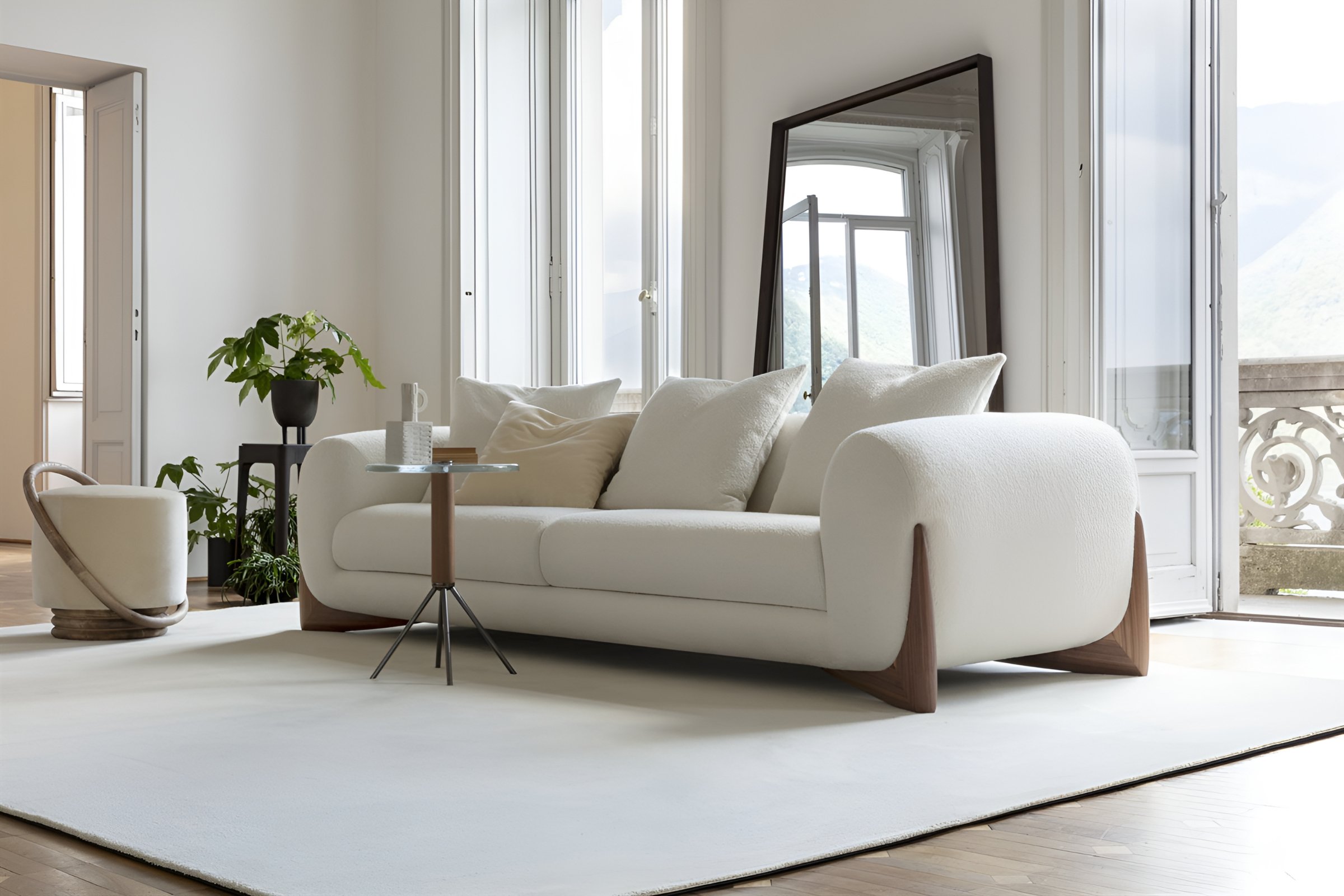 Расположенные близко к четырем углам, ножки из орехового массива Canaletta навязывают себя, определяя концы этих элементов мебели и напоминая форму скрепки. Они классифицируются как отличительные, несущие и удерживающие элементы мягкой формы, которая без них имела бы тенденцию к расширению наружу.