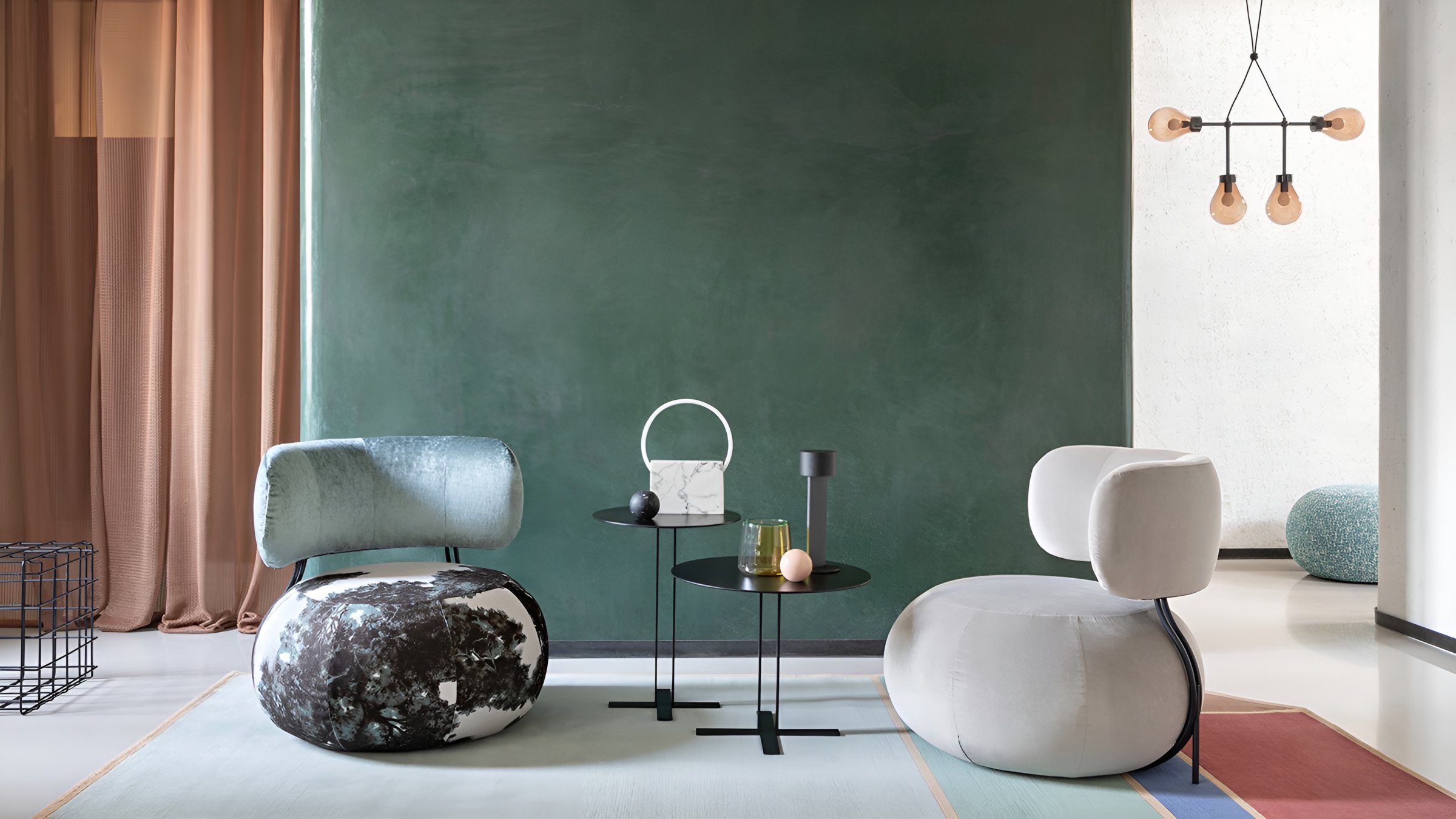 Металлическая конструкция из стержней поддерживает изогнутую деревянную спинку с мягкой обивкой. Пропорции кресла внушительные, но не слишком громоздкие. Пуфы Geo высотой 75 см сконструированы таким образом, чтобы соответствовать конструкции спинки, и могут быть легко прикреплены к основанию пуфа даже позже. Полностью съёмные чехлы.