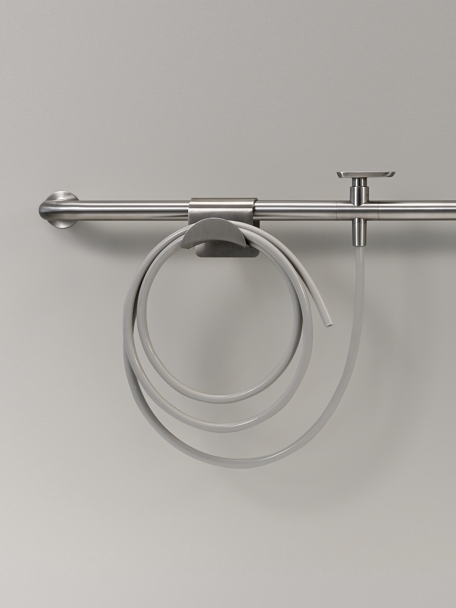 Система HOOK, разработанная в основном для использования на открытом воздухе, с настенной водопроводной системой и широким выбором композиций, адаптируется к любым потребностям проекта, выполняя множество функций: она служит опорой для подвешивания и организации повседневных предметов, которым нужна вода: от садовых инструментов до мытья домашних животных или спортивного инвентаря, и даже может использоваться в качестве уличного душа. Кроме того, HOOK можно использовать в помещениях, например в ванных комнатах, для подключения раковины, биде и душа, и в то же время он может служить вешалкой для полотенец и аксессуаров в зоне мойки на кухне.