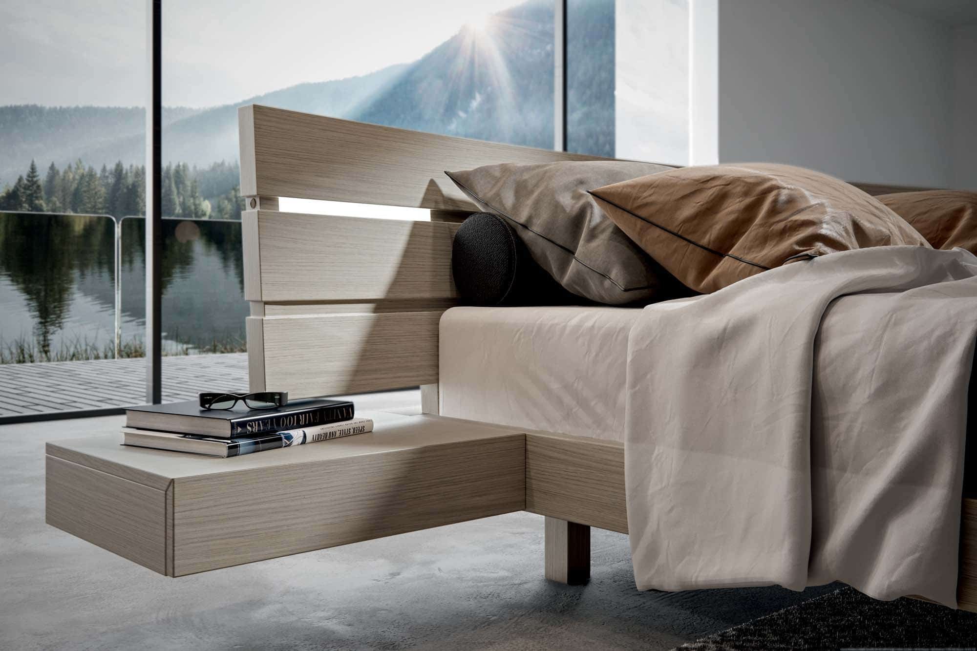 В рабочей кровати обзор имеет большой эффект сцены, благодаря подвесным тумбочкам, встроенным в кольцо, и просторному, а также обволакивающему изголовью со встроенными светодиодными лампами.